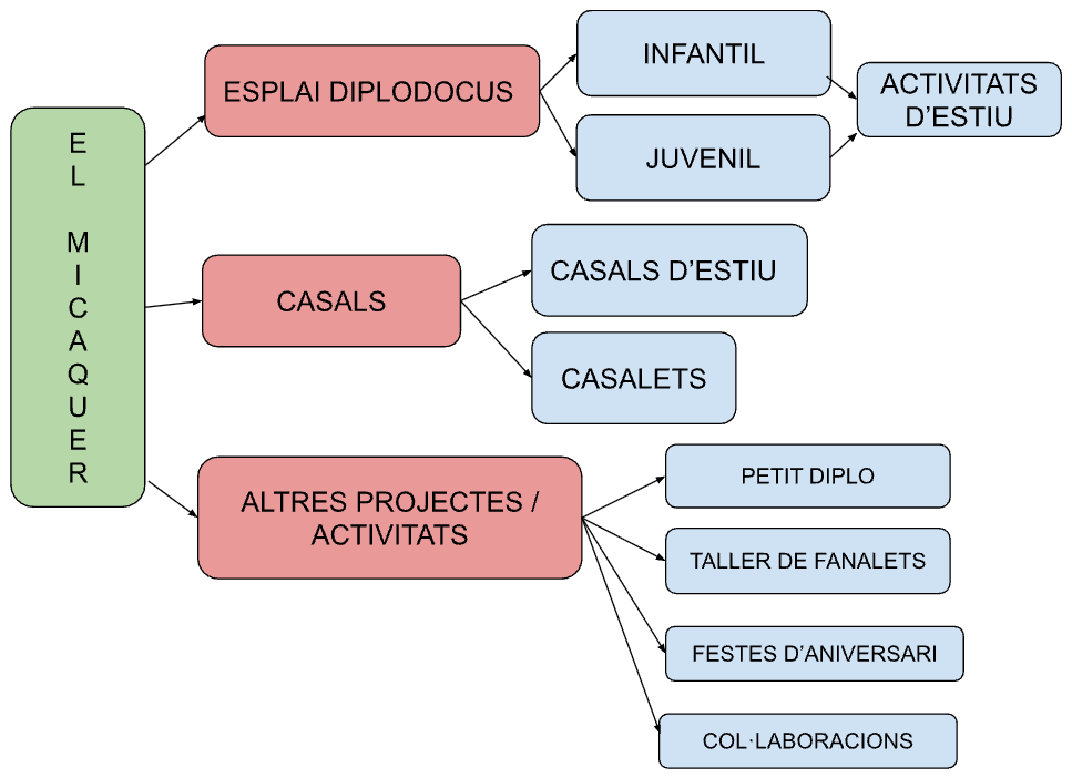 El Micaquer agrupa diferents projectes, com l’Esplai diplodocus amb la secció infantil i juvenil, els Casals de Vacances i altres activitats extraescolar com el petit Diplo o el taller de fanalets.